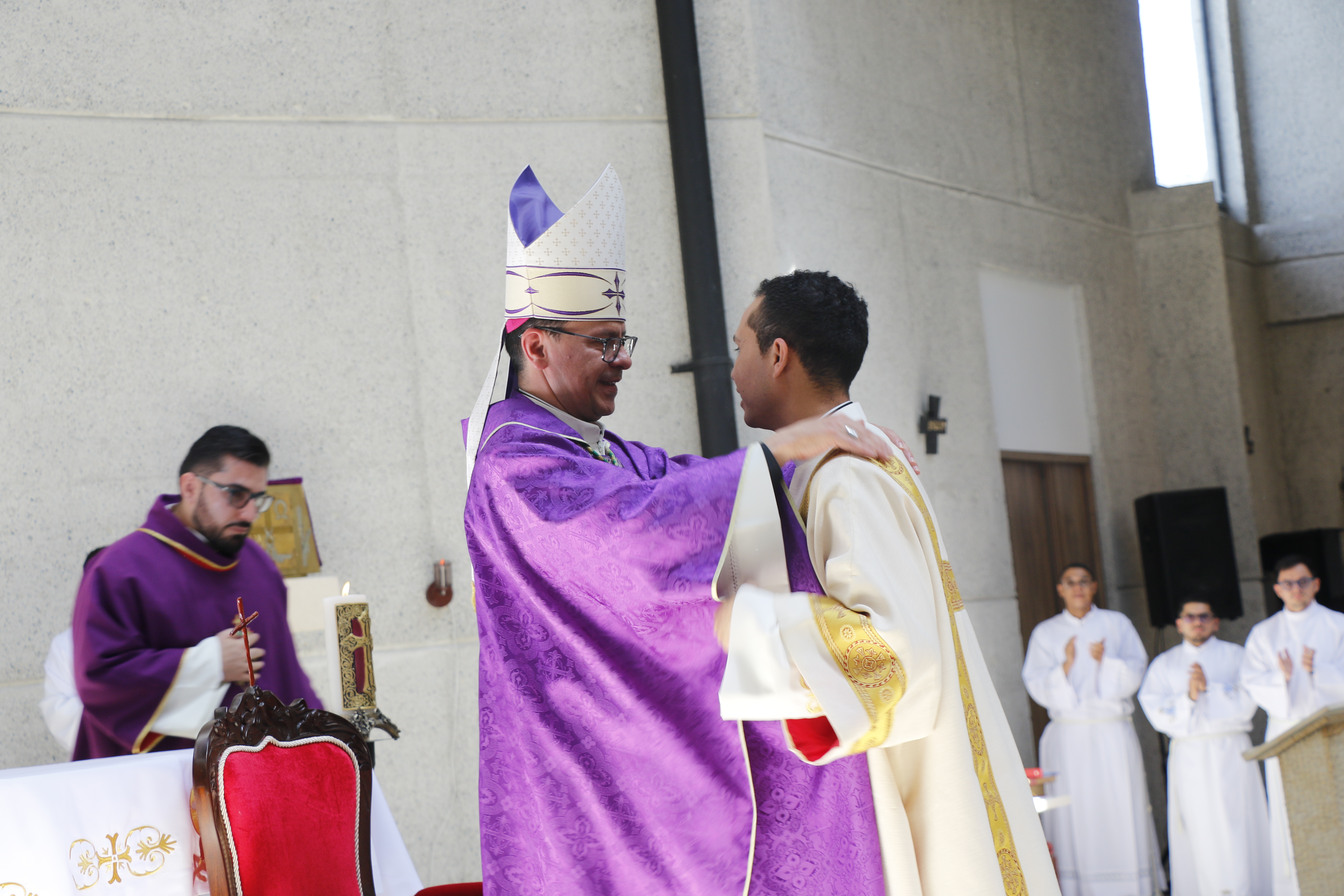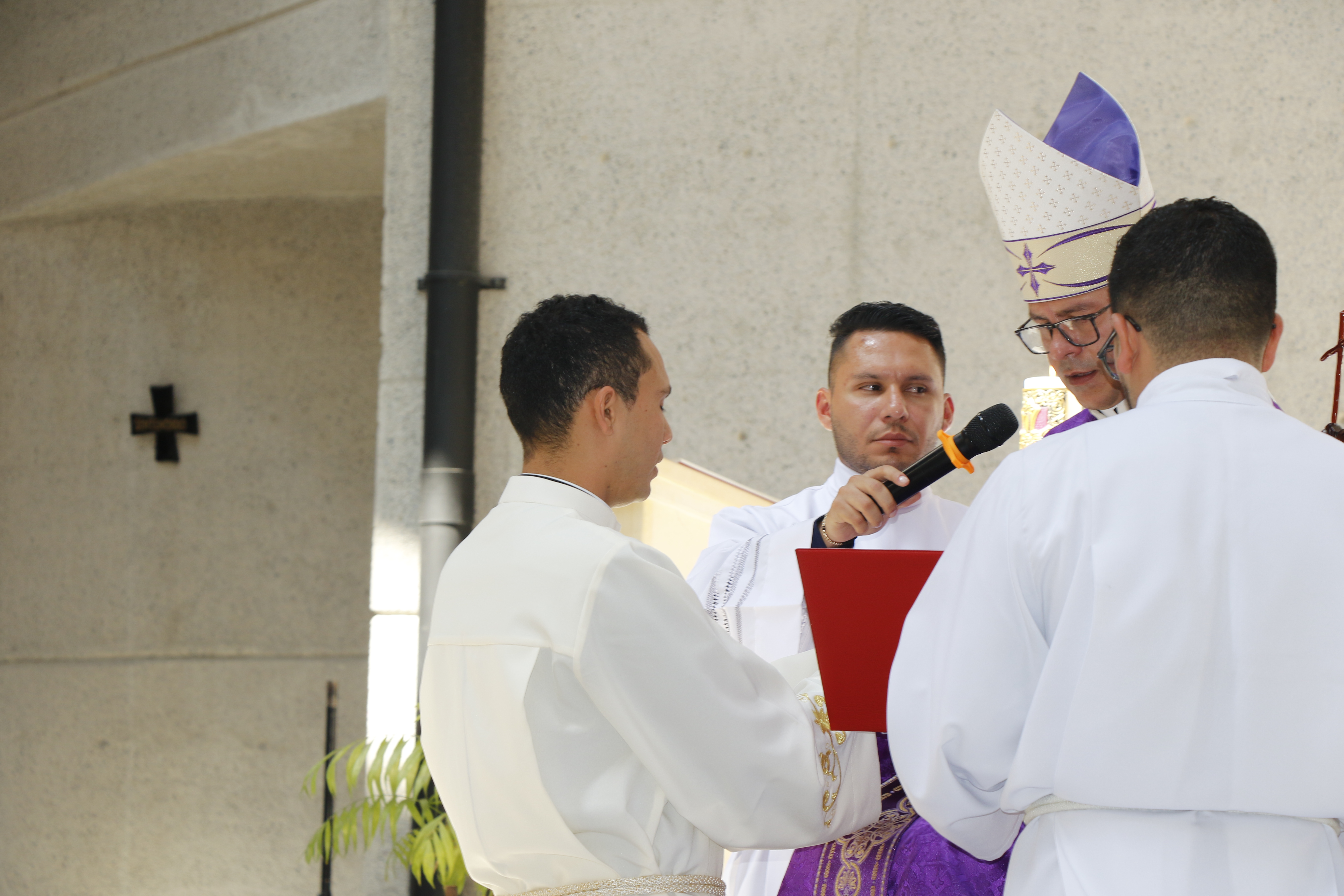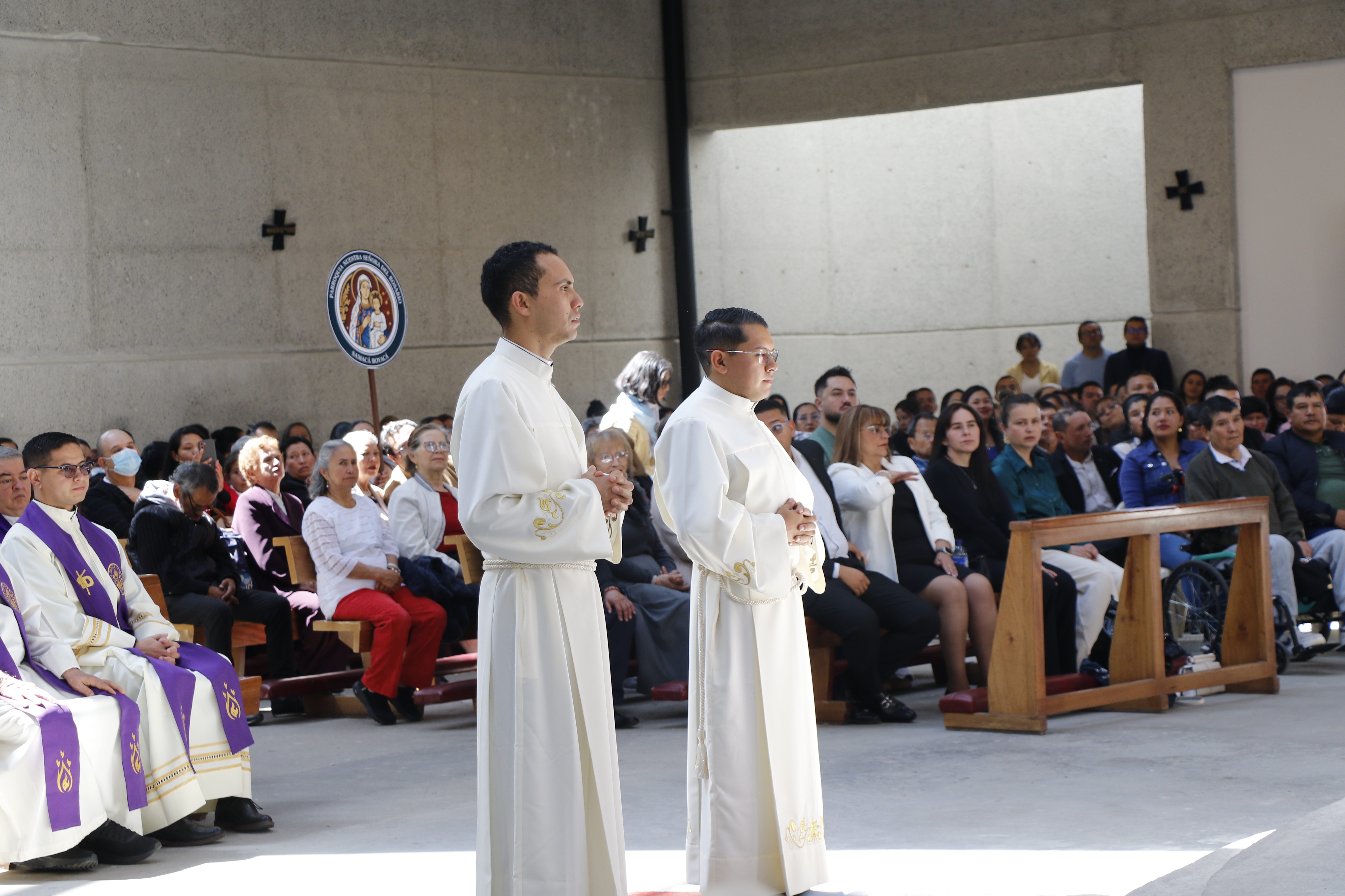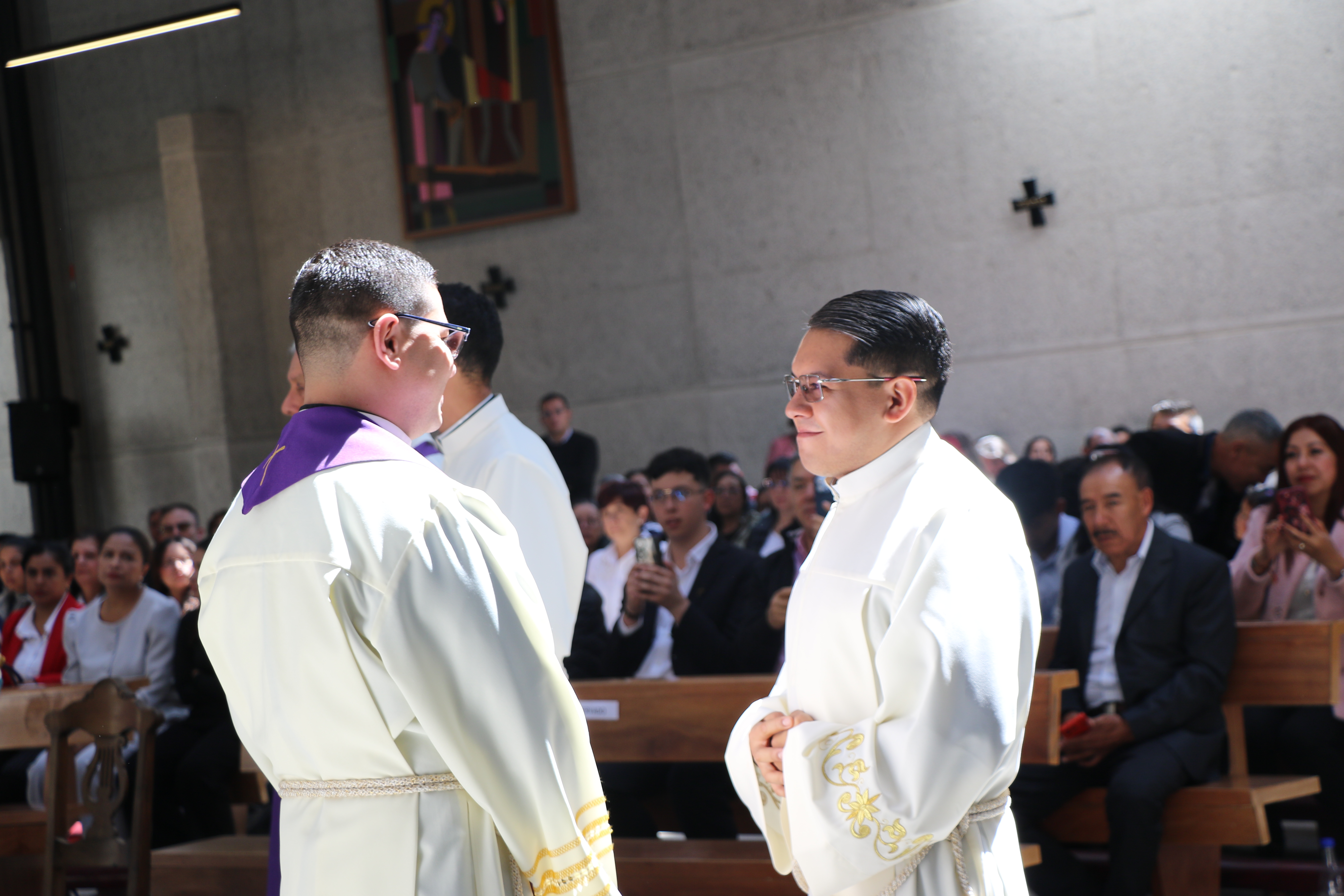 En un ambiente de fe, alegría y profunda comunión, la Congregación de Jesús y María – Provincia Eudista El Minuto de Dios celebró las ordenaciones diaconales de los Eudistas Cristian Julián Cely Cruz y Wilmer Harold Mariño Niño, un paso decisivo en su camino vocacional y un signo de esperanza para la Iglesia. La celebración tuvo lugar el pasado 22 de marzo, en la parroquia San Juan Eudes, en el barrio Minuto de Dios, y fue presidida por Monseñor Germán Humberto Barbosa Mora, quien, mediante la imposición de manos y la oración consecratoria, confirió el ministerio del diaconado a estos incorporados. Este momento tuvo además un carácter especial, ya que fueron sus primeras ordenaciones diaconales como Obispo Auxiliar de la Arquidiócesis de Bogotá, lo que llenó la celebración de un significado particular.
